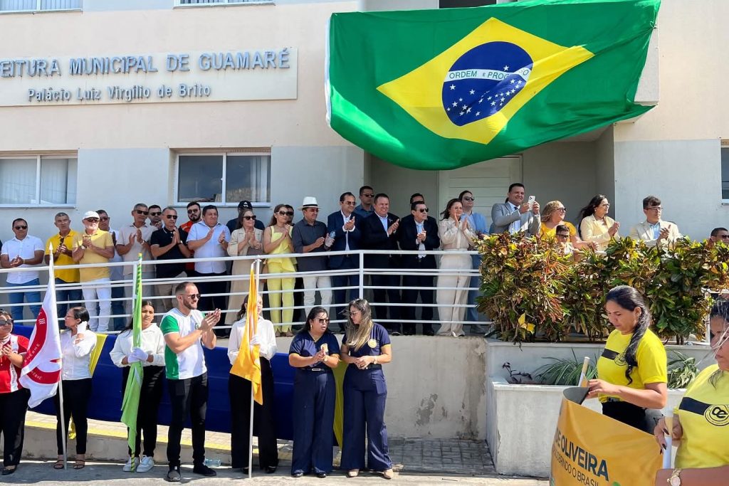 A cerimônia teve início com o hasteamento das bandeiras pelas autoridades e a vereadora Eliane Guedes falou em nome do Poder Legislativo, Sob a organização da Secretaria Municipal de Educação e Cultura, o evento reuniu um grande público em frente a sede do Poder Executivo.
