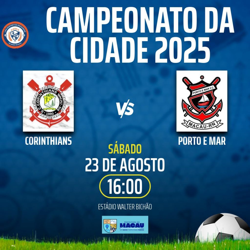 Neste sábado, dia 23 de agosto, tem rodada dupla de jogos do Campeonato da Cidade, edição 2025, realizado pela LIDEM – Liga Desportiva Macauense, sob o comando do desportista Ítalo Mendonça. A competição tem movimentado o cenário esportivo no município, atraindo um bom público.